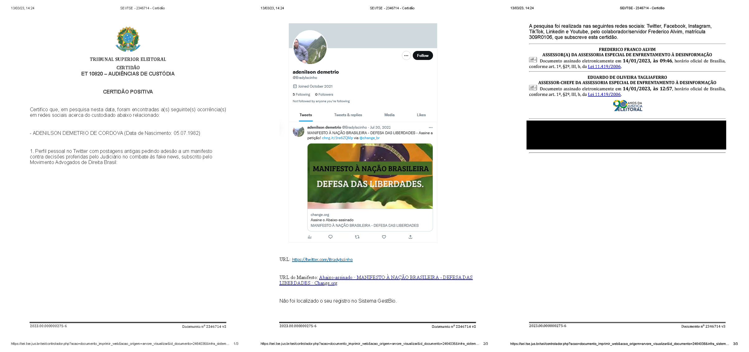 In another case, Adenilson Demetrio de Cordova received a “positive” label because of a single post found on X. It linked to a petition titled “Manifesto to the Brazilian Nation – In Defense of Liberty,” published months before the 2022 election by a profile with zero followers and zero views.
