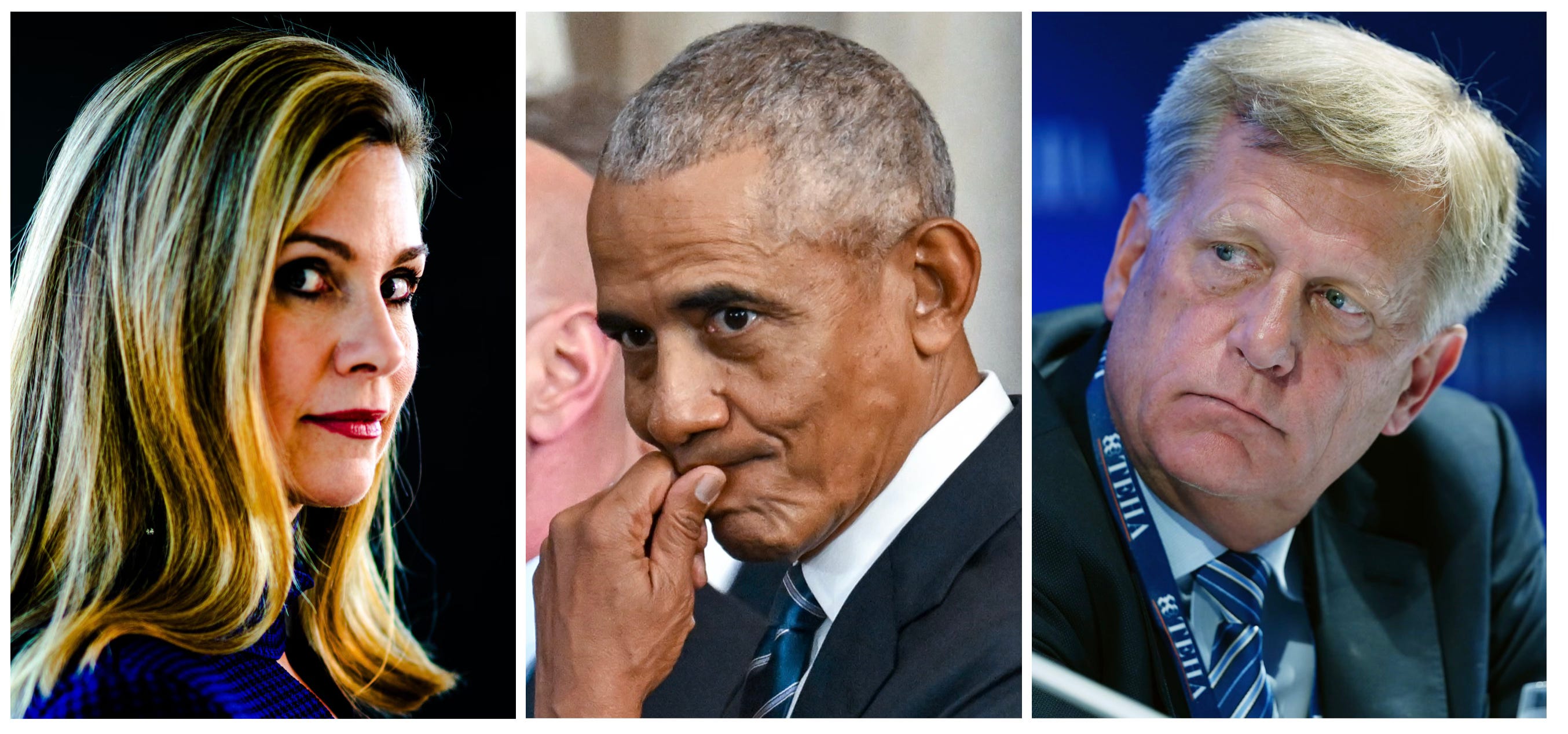 Australia’s top censor, Julie Inman-Grant (left); former President Barack Obama (center); Michael McFaul, former Russia ambassador under Obama, who oversees Stanford Cyber Policy Center (right)
