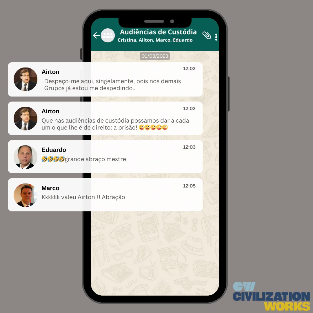 O juiz escreveu: “Despeço-me aqui, singelamente, pois nos demais grupos já estou me despedindo... Que nas audiências de custódia possamos dar a cada um o que lhe é de direito: a prisão! 😜😜😜😜😜”. O juiz tinha sido encarregado de garantir a imparcialidade, mas suas mensagens privadas revelaram seu julgamento antecipado e um cinismo por trás de uma operação que suspendeu o devido processo legal enquanto os responsáveis fingiam defendê-lo.