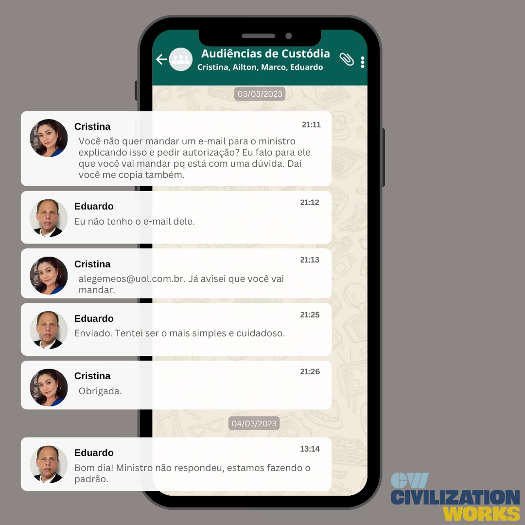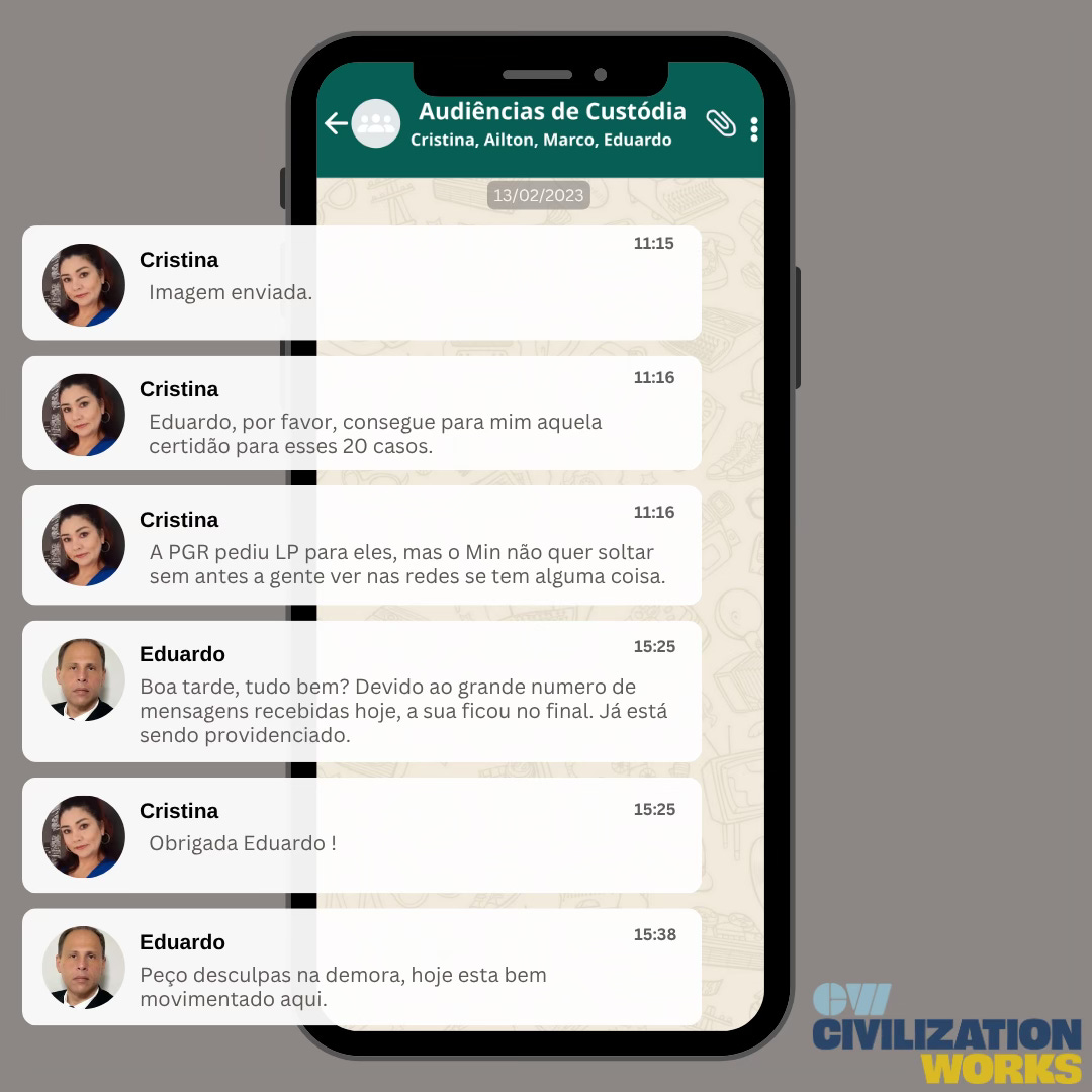 As mensagens mostram que os funcionários receberam listas informais de detidos, incluindo nomes, fotos e números de identificação da Polícia Federal, sem qualquer cadeia de custódia formal.