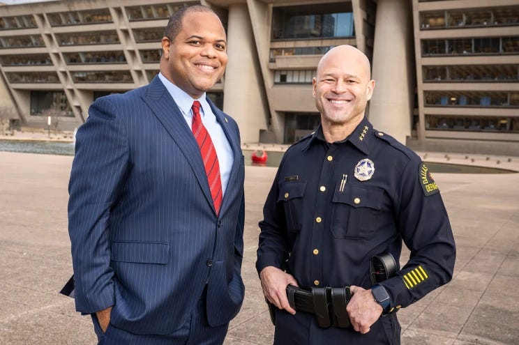 Dallas Mayor Eric Johnson and Police Chief Eddie Garcia (Photo Credit: R.J. Hinkle for NY Post)
